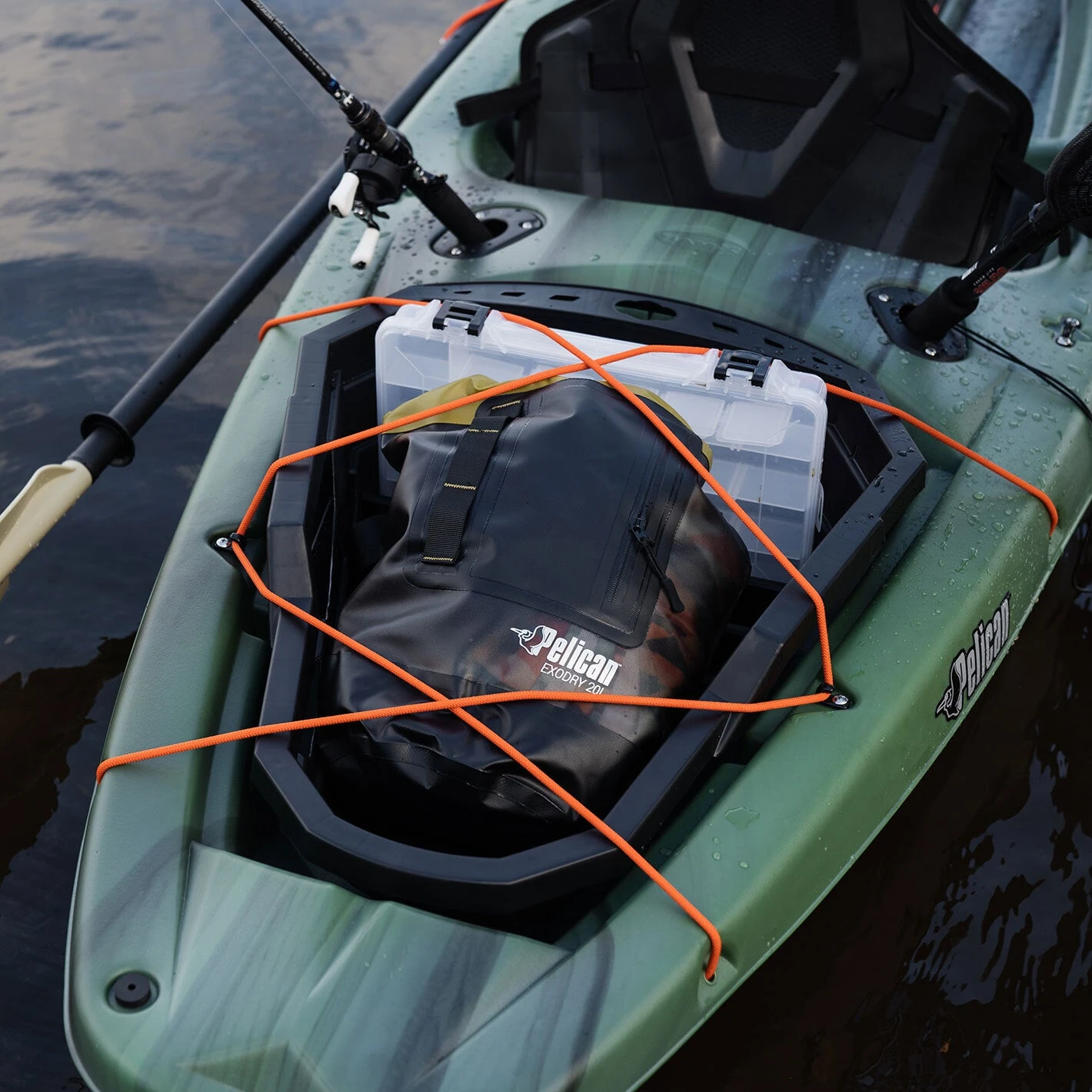 The ExoPak is a removable storage compartment that fits perfectly into the tank well of most of our recreational kayaks. This allows you to pack your gear at home before your trip and simply drop it into the kayak when you arrive waterside. The ExoPak comes equipped with two vertical rod holders and includes multiple sections and additional bungee cords.,